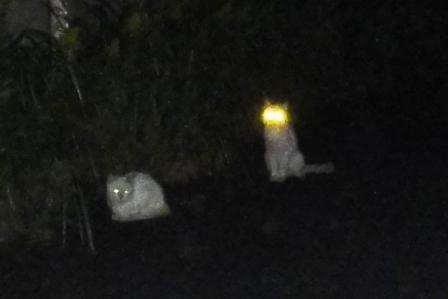 闇夜に光るにゃんこの目☆