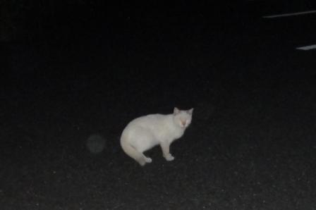 帰宅時に駐車場に4,5匹の白にゃんこ発見!