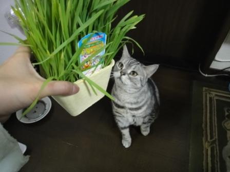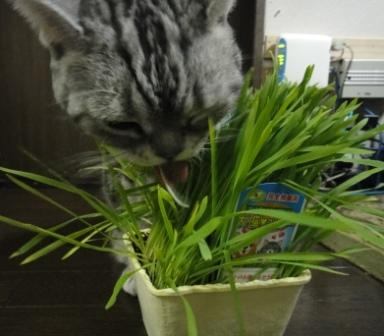 コーナン灘大石川店で猫草(298円)を買って帰りました。最初は葉っぱをかじっていたさくちゃん。