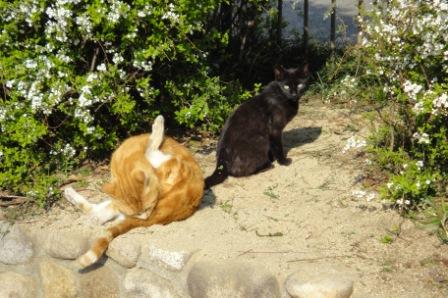 兵庫県神戸市灘区稗原町 エスポワール六甲道の近所の公園に黒と茶の猫が2匹いました。