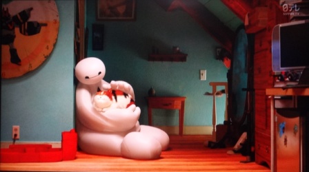 ベイマックスに生前のタダシの映像が流れたときと、ベイマックスが飛んで消滅するときに泣けたにゃ。